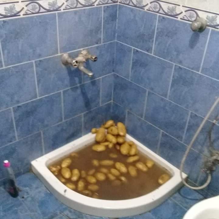 ضبطت غرفة عمليات الحرس البلدي بنغازيوبالتعاون مع قسم النجدة، محل خضروات، يقوم العاملين فيه بغسل البطاطا المصريه في دورة المياه، ويرشون عليها فيما بعد تراب من المنطقه الغربيه، لبيعها على اساس أنها بطاطا طرابلسيه.