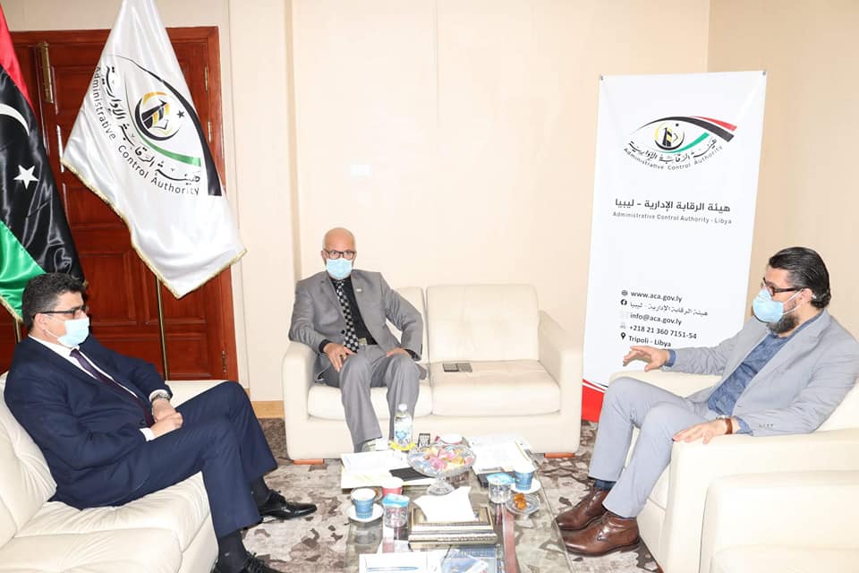 عقد رئيس هيئة الرقابة الإدارية سليمان الشنطي اجتماعاً مع رئيس ديوان المحاسبة خالد شكشك ورئيس الهيئة الوطنية لمكافحة الفساد نعمان الشيخ بمقر هيئة الرقابة الإدارية في طرابلس .