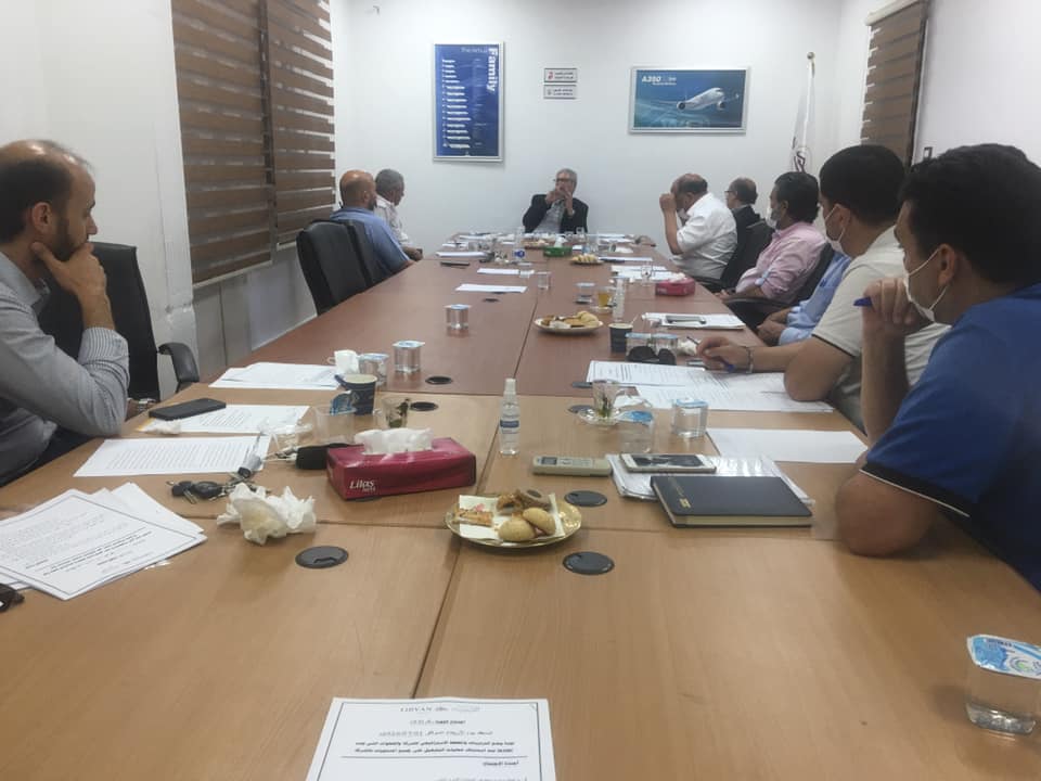 عُقد في مقر إدارة التدريب التابعة لشركة الخطوط الجوية الليبية بمدينة طرابلس، الاجتماع الثاني للجنة الترتيبات والمخطط الاستراتيجي للشركة بهدف وضع الخطوات التي يجب اتخاذها عند استئناف عمليات التشغيل.