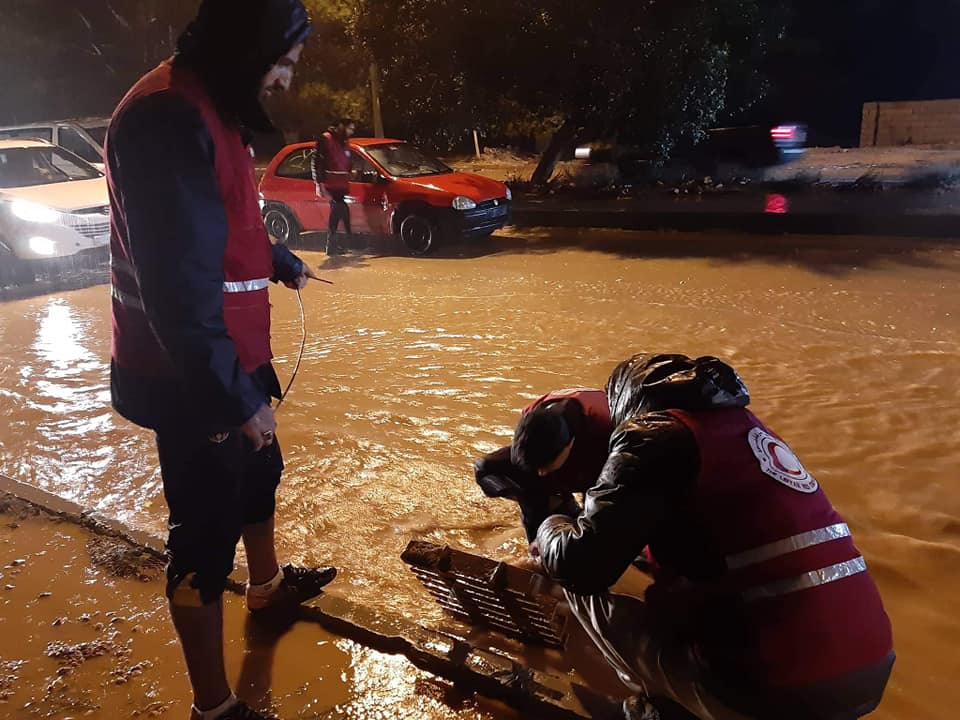 بدوره قام فريق الطوارئ في فرع الهلال الاحمر بالتعاون مع شركة المياة و الصرف الصحي،و جهاز الإسعاف والطوارئ، والجهات الأمنية،بإعداة فتح مواقع تصريف مياة الأمطار و مساعدة المتضررين وتسهيل حركة المرور داخل المدينة.