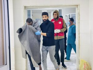 وفي إطار استكمال الدور الإنساني، توجه فريق الهجرة التابع للهلال الأحمر بفرع درنة إلى مركز إيواء “مرتوبة” لتفقد أوضاع الناجين. حيث قدم المتطوعون “الإسعاف النفسي الأولي” للمتضررين، بالإضافة إلى تزويدهم بالملابس والمعدات الشخصية والوقوف على احتياجاتهم الأساسية لضمان صون كرامتهم وتخفيف وطأة الصدمة عنهم.
