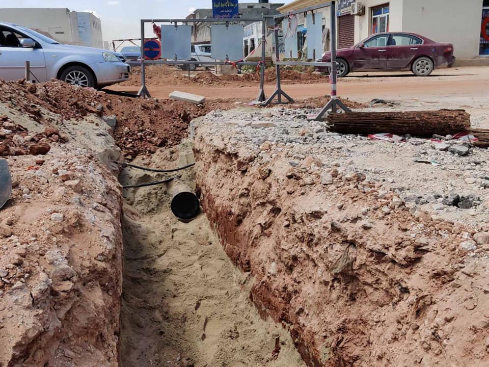 باشرت بلدية بنغازي بتنفيذ مشروع خط مياه شُرب بطول 3280 م في أمتداد شارع المشروبات بمنطقة بوعطني.