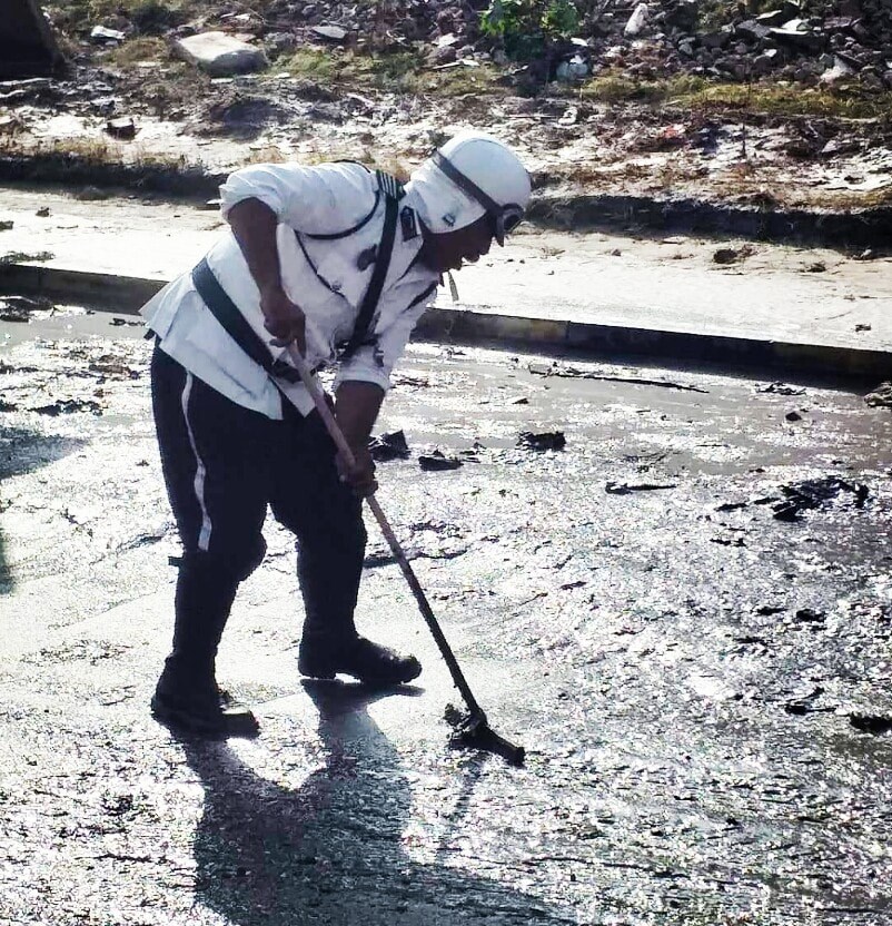 نشرت مديرية أمن طرابلس عبر صفحتها على “فيسبوك” منشور يظهر كيف يقوم شرطي بتنظيف أحد الشوارع الذي تجمع عليه “الوحل” مما تسبب بإعاقة حركة السير.