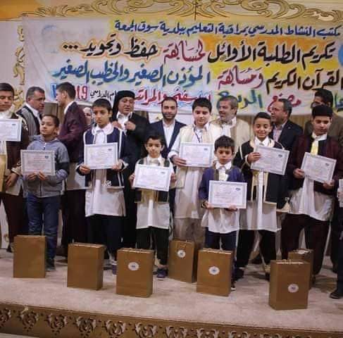 نظم مكتب النشاط المدرسي بمراقبة تعليم سوق الجمعة احتفالية لتكريم الطلبة الأوائل لمسابقة حفظ وتجويد وتلاوة القرآن الكريم ، ومسابقة المؤذن الصغير والخطيب الصغير للعام الدراسي 2019/2018، بحضور وكيل الوزارة التعليم بحكومة الوفاق عادل جمعة ومعه عدد من المسؤولين بالوزارة.
