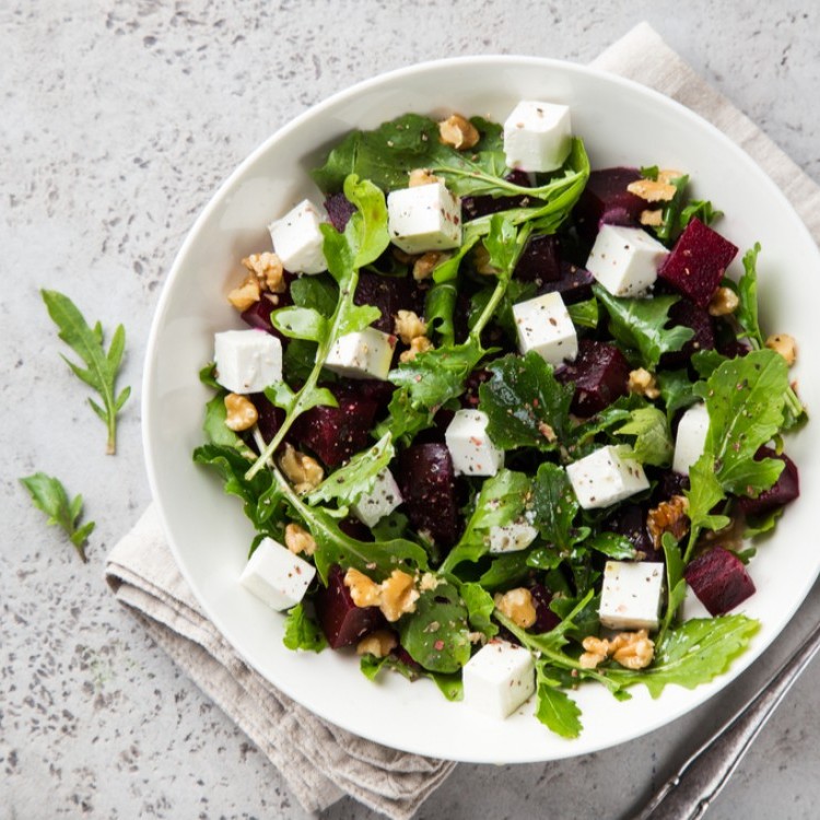 4- وزّعي الجبن والجوز والشمندر على الوجه بالتساوي ثمّ قدّميها على سفرتك.