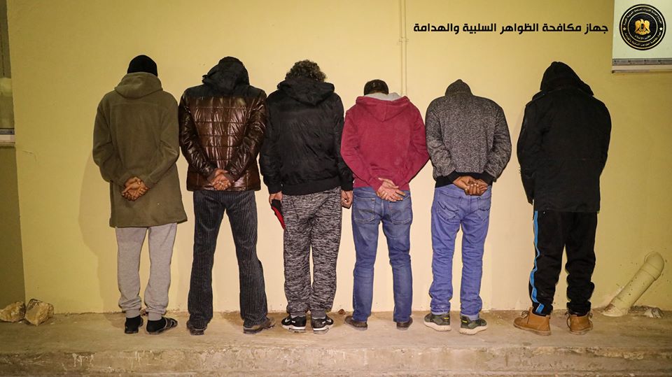داهم عناصر جهاز مكافحة الظواهر السلبية والهدامة وكراً للخمورالمحلية والمخدرات بمنطقة 602 بمدينة بنغازي بعد ورود معلومات بشأن أشخاص يتعاطون الخمور ويقومون بصناعتها وبيعها داخل المنطقة.