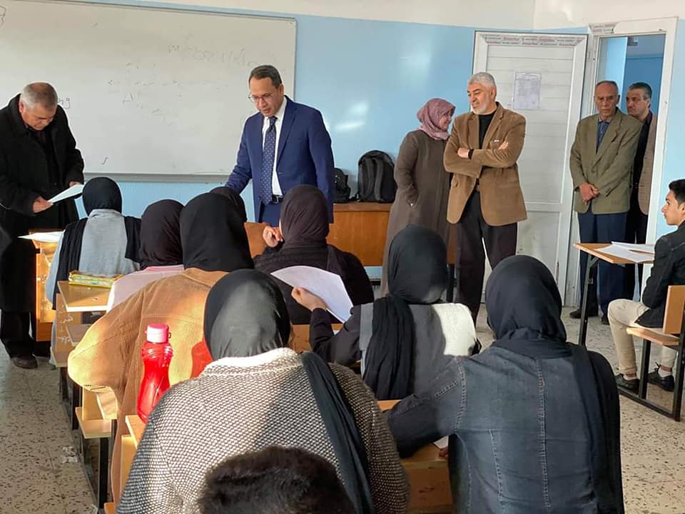 تفقد وكيل وزارة تعليم الوفاق “عادل جمعة”، اليوم الاثنين، ولليوم الثاني على التوالي سير الامتحانات في عدد من المدارس التابعة لمراقبة التعليم ببلدية جنزور، واطمأن من التلاميذ على وضوح أسئلة الامتحان، وعلى مستواهم. وأشاد جمعة بمستوى الانضباط والتنظيم الذي شاهده داخل قاعات الامتحان ، مبدياً رضاه التام على الظروف التي هيئتها المدارس للطلبة الممتحنين واصفاً إياها بالمحفزة والملائمة .