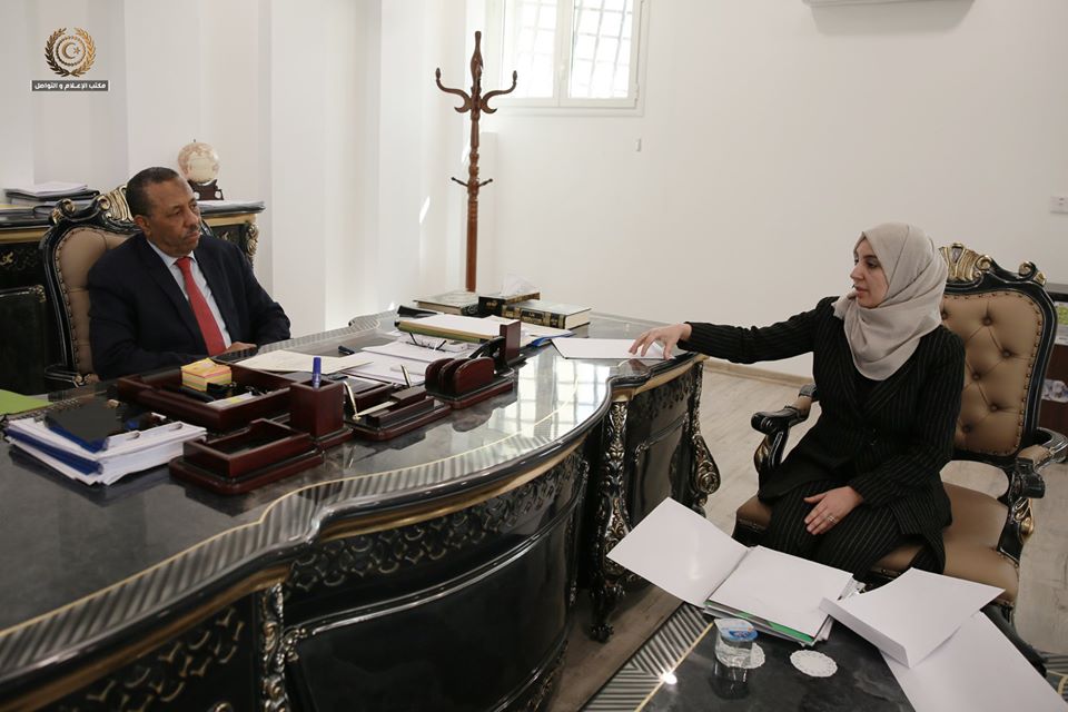 عقد رئيس الحكومة المؤقتة عبدالله الثني بمقر إقامته في بنغازي اجتماعا مع وزيرة الشؤون الاجتماعية د. فتحية حامد