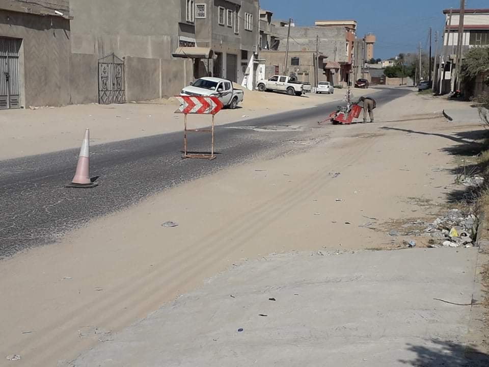 بدأت في مصراتة أعمال صيانة الطريق الرابط بين جزيرة المهمل ومنطقة الجزيرة بالفرع البلدي شهداء الرملية، بإشراف مكتب المشروعات بالبلدية.