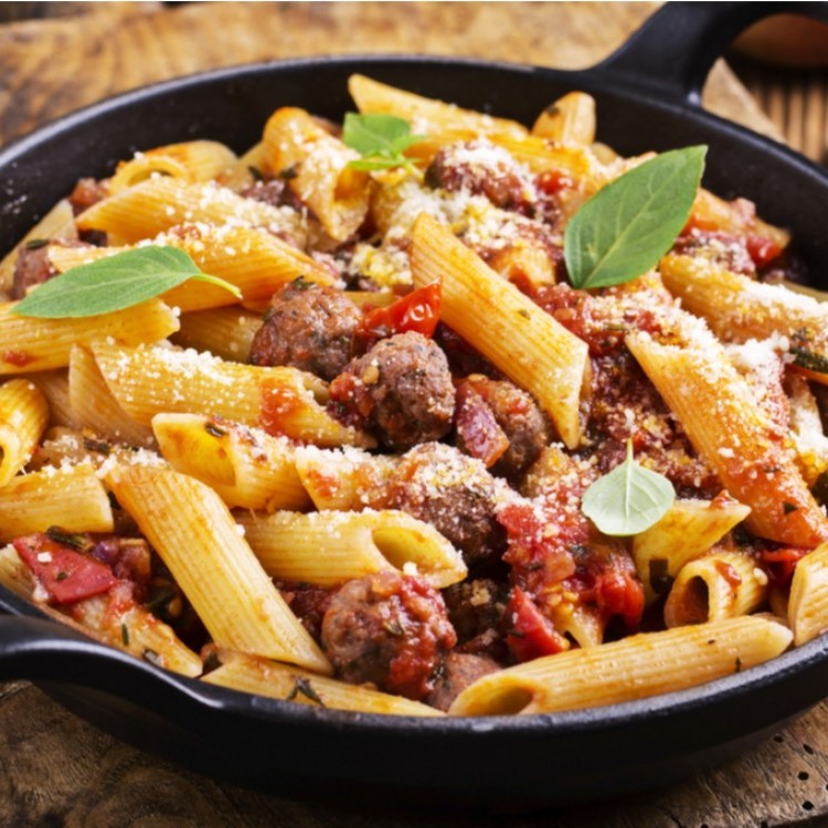 ضعي الباستا في طبق التقديم ووزعي الصوص وكرات اللحم فوقها ورشة جبن بارميزان وقدميها ساخنة.