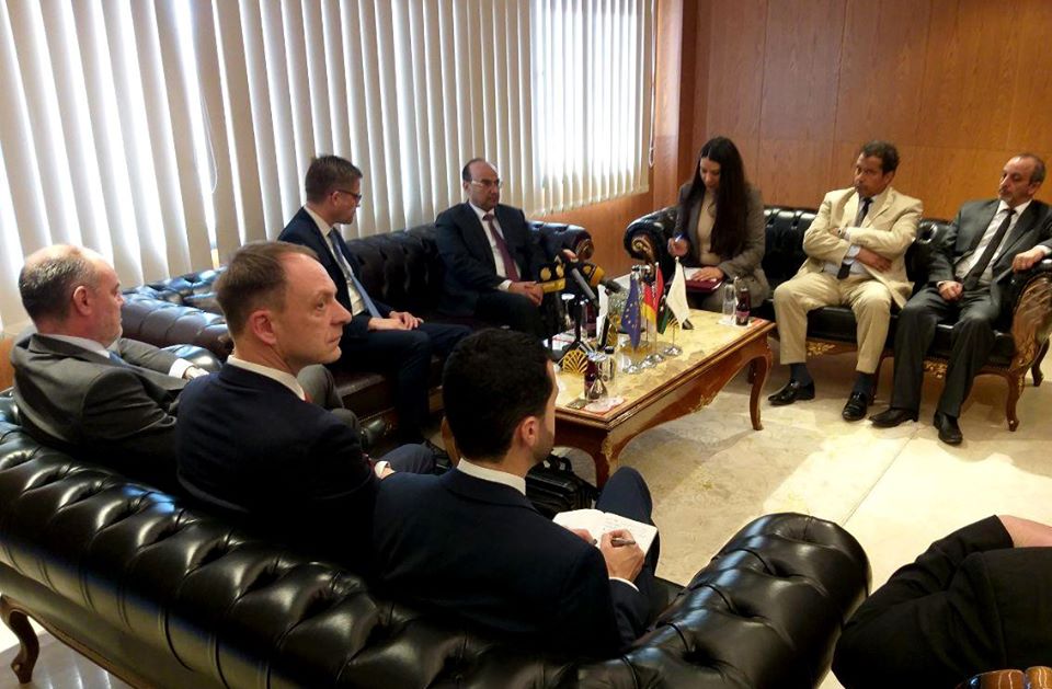 إستقبال رئيس المجلس التسييري لبلدية بنغازي م. الصقر عمران بوجواري اليوم الاربعاء سفير ألمانيا لدى ليبيا أليفر أوفيتشا وسفير الإتحاد الأوربي في ليبيا آلان بوجيا ومديرمكتب المغرب العربي والشرق الأوسط بوزارة الخارجية الألمانية كريستيان بوك.