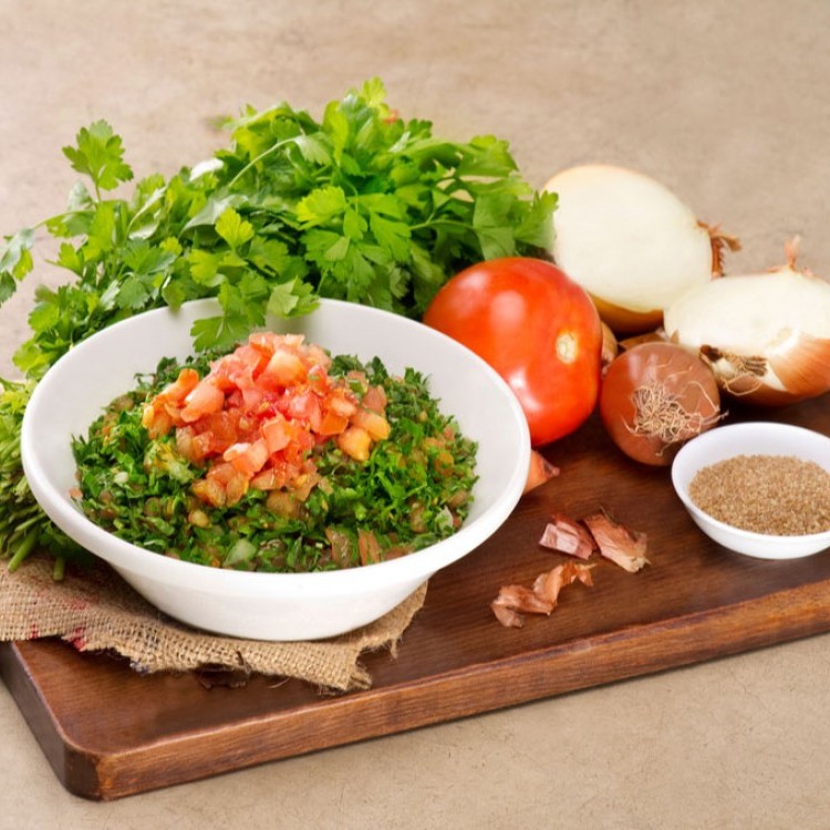 2. اخلطي البقدونس مع النعنع والطماطم في وعاء واسع.