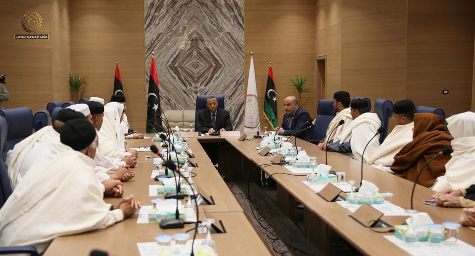 استقبل رئيس وزراء الحكومة المؤقتة عبدالله الثني في ديوان رئاسة مجلس الوزراء في بنغازي أعيان ومشائخ وحكماء بلدية القواليش.