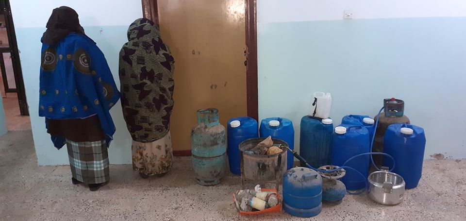 ضبط مركز شرطة حي الشورى التابع لمديرية أمن الكفرة سيدتين تقومان بصناعة الخمور في المنزل..