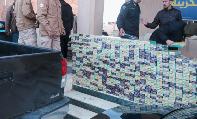 وأفاد الجهاز أنه تم ضبط شخص تونسي الجنسية كان يحاول تهريب البضائع من ليبيا إلى تونس، حيث كانت بحوزته 2935 علبة من المعسل، و1120 علبة من السجائر، بالإضافة إلى عدد من الأجهزة الإلكترونية وصناديق من الشاي.