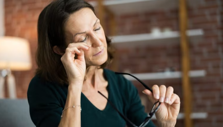- انقطاع الطمث: يؤدي انخفاض مستويات الهرمونات إلى تقليل إنتاج الدموع، مما يؤدي إلى جفاف مزمن وتهيج وزيادة خطر الإصابة بإعتام عدسة العين والزرق.