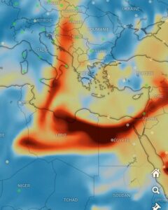 حيث يحذر المختصون من وصول غاز ثاني أكسيد الكبريت الضار بسبب ثوران بركان “إتنا” إلى شرق ليبيا، بسبب التيارات الهوائية الشمالية على شرق ليبيا ويتجه نحو الصحراء الليبية عبر البحر المتوسط