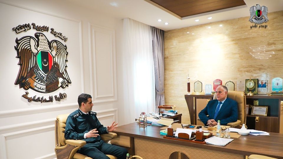 بحث وزير الداخلية في الحكومة المؤقتة المستشار إبراهيم بوشناف صباح اليوم الثلاثاء سير العمل الأمني بمديرية أمن المرج والأقسام التابعة لها وذلك خلال اجتماع عقده بمكتبه في ديوان الوزارة ببنغازي مع مدير الأمن عقيد وهبي الرخ.