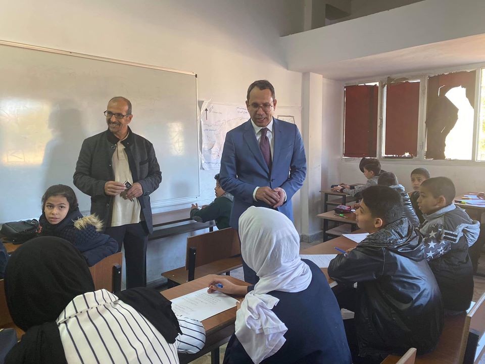 زار وكيل وزارة التعليم لشؤون الديوان والتعليم العام في حكومة الوفاق عادل جمعة، رفقة عميد بلدية عين زارة عبد الواحد بلوق ومراقب التعليم بالبلدية محمد القبائلي، مدرسة المبيت الجامعي للتعليم الأساسي التي تضم 300 تلميذ والتي تم استحداثها مطلع نوفمبر الماضي من قبل بلدية عين زارة بالتنسيق مع وزارة التعليم لاستقبال الطلبة النازحين والقاطنين مع ذويهم في بيوت المبيت الجامعي، بهدف مراعاة ظروفهم المعيشية الصعبة وتيسير عملية تقديم خدمات تعليمية جيدة ومناسبة للتلاميذ بما يمنع تسربهم ويضمن التحاقهم جميعاً بالمدرسة.